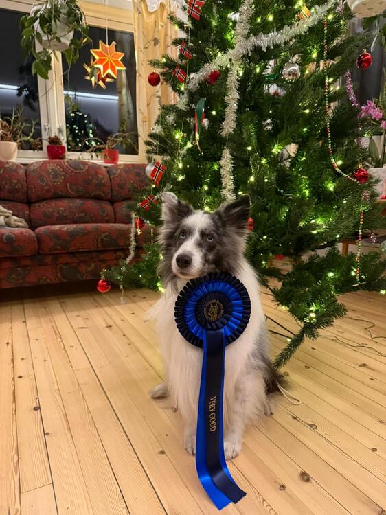 Max har blitt veteran🙃 Gratulere til Max som ble 8 år den 06.04. I desember var vi på jakt etter gulsløyfa, stang ut første dagen, men dagen etter sjarmerte han dommeren nok til den blå, og han har nå bevis på at han er en "very good" gutt.