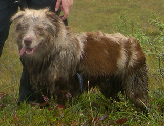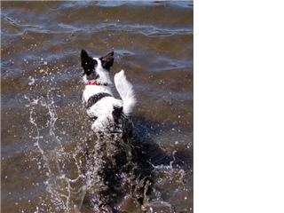 Synd jeg ikke har bilde fra da Koda nesten druknet i et gjørmehull da, han så ikke ut, tror jeg vasket gjørme av pelsen hans i 2uker :wub: Så jeg er bare glad mine ikke liker slike aktiviteter.