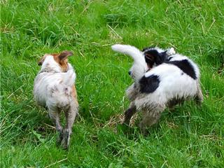 Her er det Aika og nabobikkja Enya som prøver seg på gjørme-SPA :) .