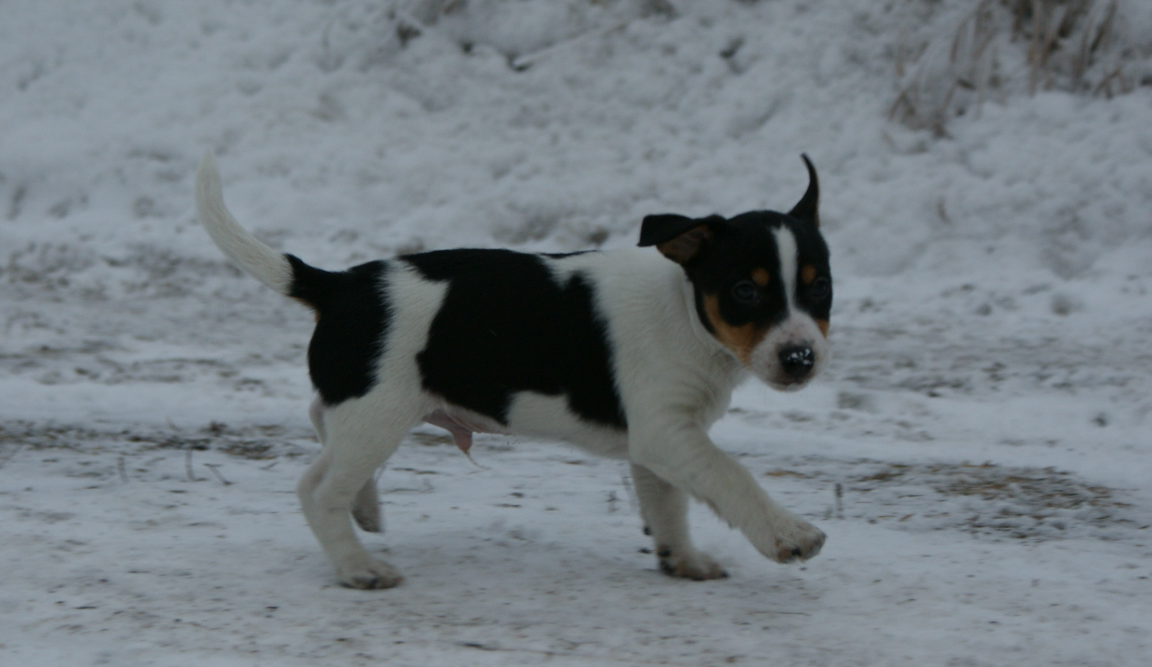 Hunden heter Zico og er en jack russel på 6 mnd. Har vært litt slapp med treningen på han så litt ulydig er han men skal nå snart melde oss på valpekurs.